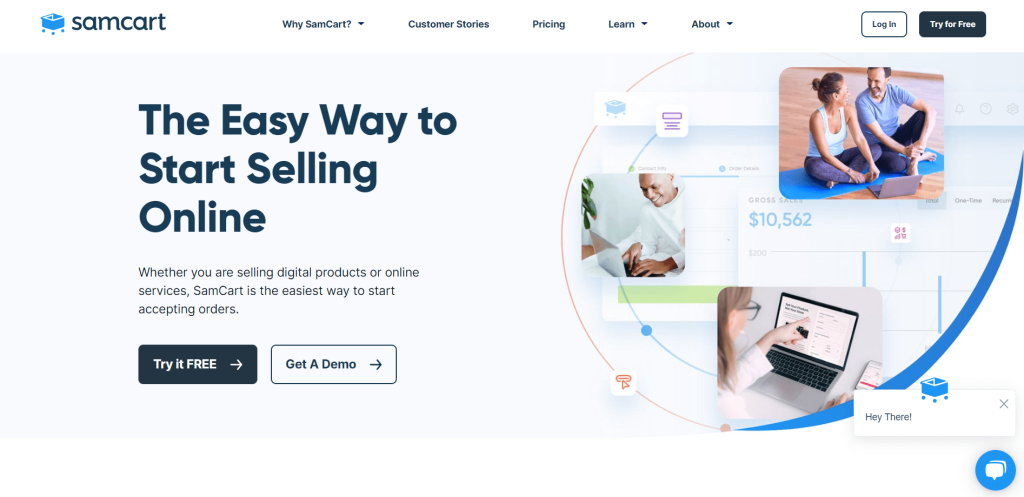 Step 2 – On the SamCart official page, click the Try it free button on top of the page.